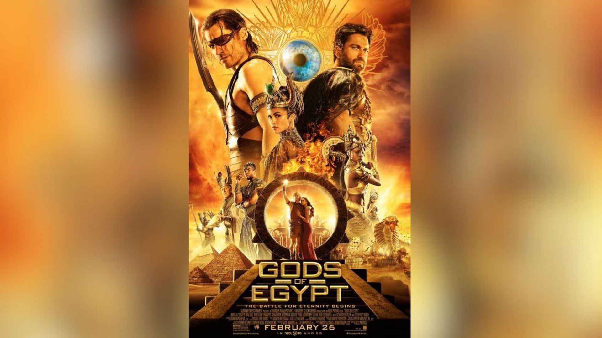 Αιγύπτιοι θεοί Είναι ένα δράμα δράσης φαντασίας που παρουσιάζεται από τη Lionsgate Entertainment. Η σκηνοθεσία της ταινίας είναι του Alex Proyas και το σενάριο υπογράφουν οι Matt Sazama και Burk Sharpless. Η ταινία κυκλοφόρησε στους κινηματογράφους το 2016 με σε μεγάλο βαθμό αρνητικές κριτικές από κριτικούς και απέτυχε στο box office.